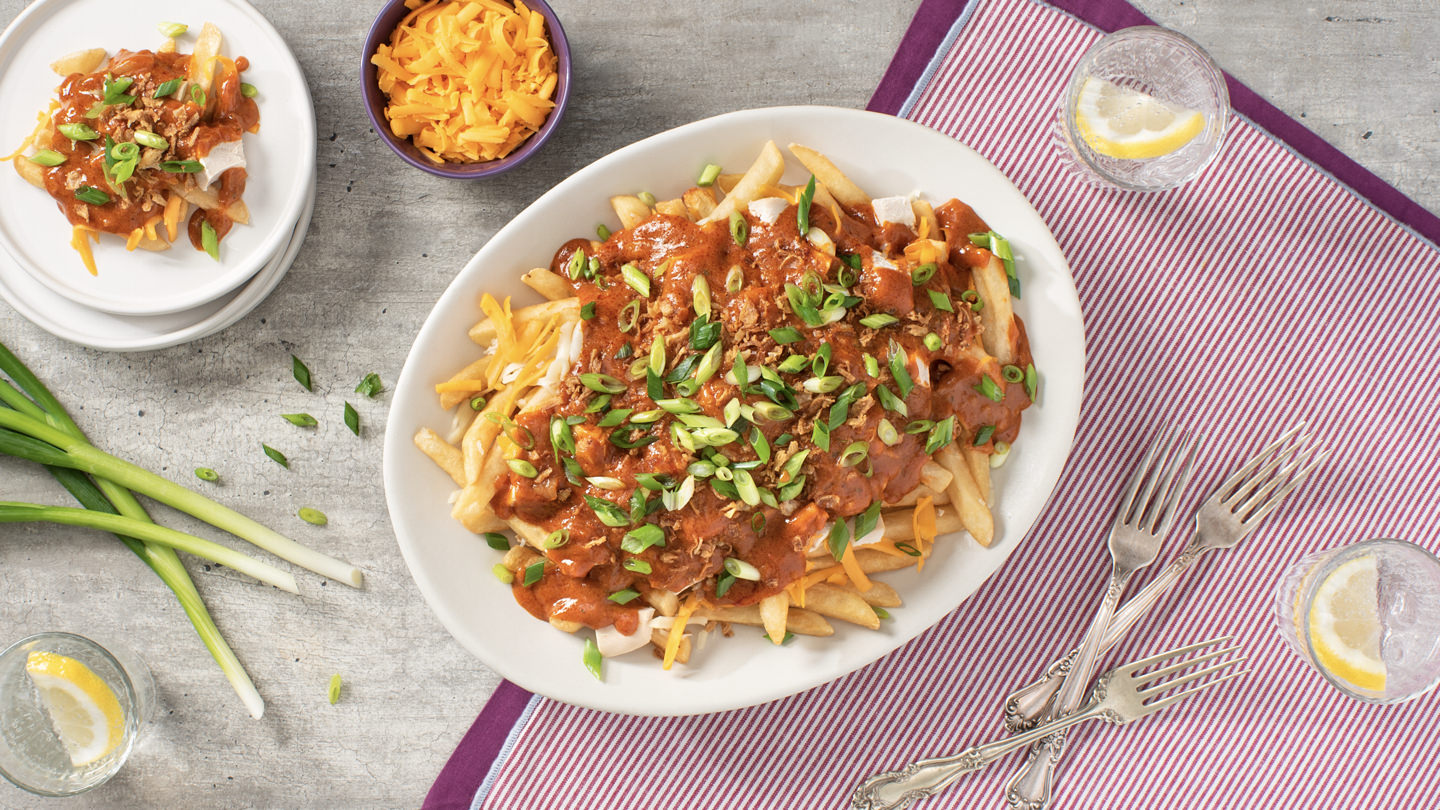 Now its time to serve, put some French fries into a bowl, add your gravy, and add some cheese and serve!